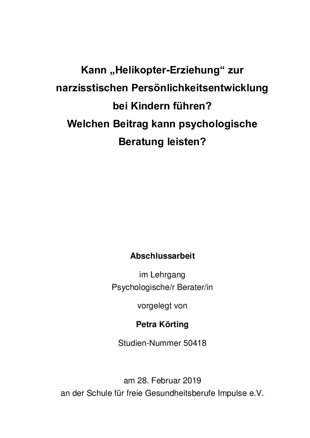 Publikationen von Petra Körting Praxis für Beratung und Psychotherapie nach dem Heilpraktikergesetz