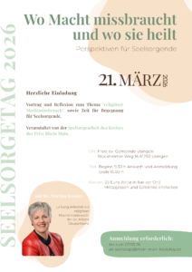 Vortrag und Reflexion zum Thema „religiöser Machtmißbrauch“, sowie Zeit für Begegnung für Seelsorgende